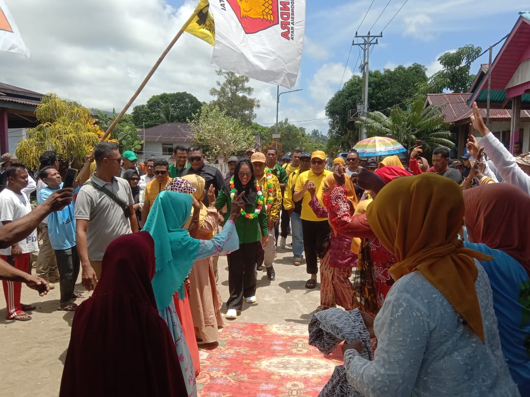 SANANA-Pasangan Calon (Paslon) Bupati dan Wakil Bupati Kepulauan Sula nomor urut 2, Fifian Adeningsi Mus dan M. Saleh Marasabessy (FAM-SAH) didampingi Pimpinan partai koalisi dan simpatisan, kembali melakukan kampanye putaran ke-dua di Desa Bruakol, Kecamatan Mangoli Tengah. Senin, (21/10/2024)