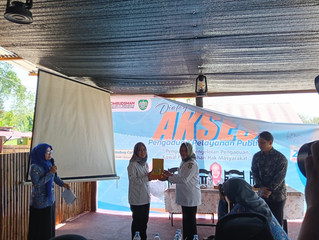 SANANA-Pejabat Sementara (PJs) Bupati Kepulaun Sula, Wa Zaharia menghadiri kegiatan Dialog terkait Akses Pengaduan Pelayanan Publik yang di laksanakan oleh Ombudsman RI Perwakilan Maluku Utara di Waibak Coff, Desa Mangega, Rabu, (23/10/2024).