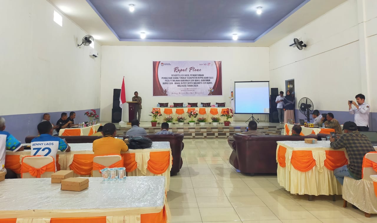 SANANA-Komisi Pemilihan Umum (KPU) Kepulauan Sula, resmi menetapkan Pasangan Calon (Paslon) Nomor Urut 2, Fifian Adeningsi Mus dan M. Saleh Marasabessy (FAM-SAH) sebagai pemerolehan suara terbanyak dalam Rapat Pleno Rekapitulasi Hasil Penghitungan Tingkat Kabupaten. Sabtu, (7/12/2024).