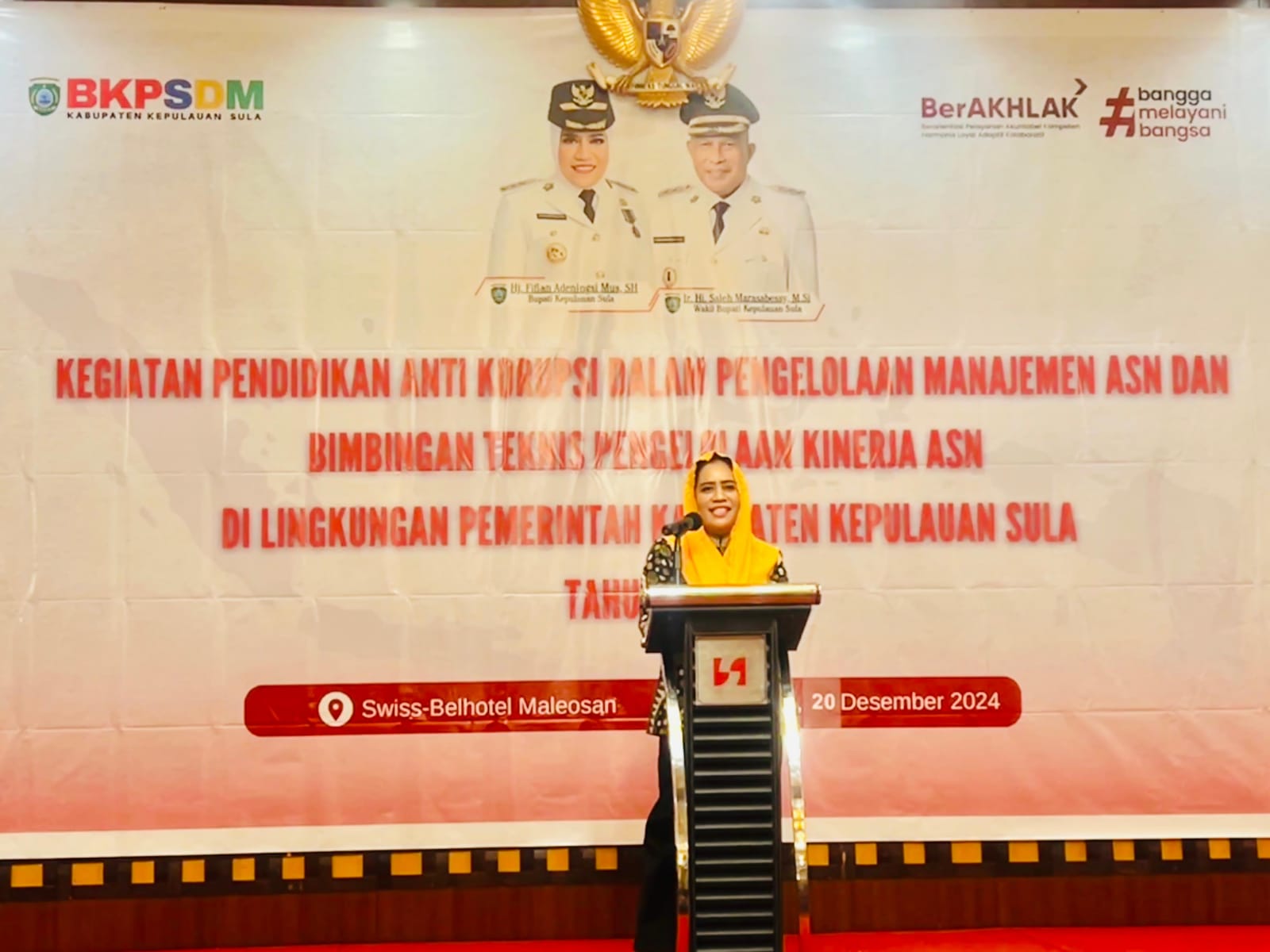 MANADO-Bupati Kepulauan Sula, Fifian Adeningsi Mus, resmi membuka kegiatan Pendidikan Anti Korupsi dalam Pengelolaan Manajemen ASN dan Bimtek Pengelolaan Kinerja ASN di lingkup Pemda Kepulauan Sula yang berlangsung di Swissbell Hotel Maleosan, Kota Manado, Sulawesi Utara. Jumat, (20/12/2024).