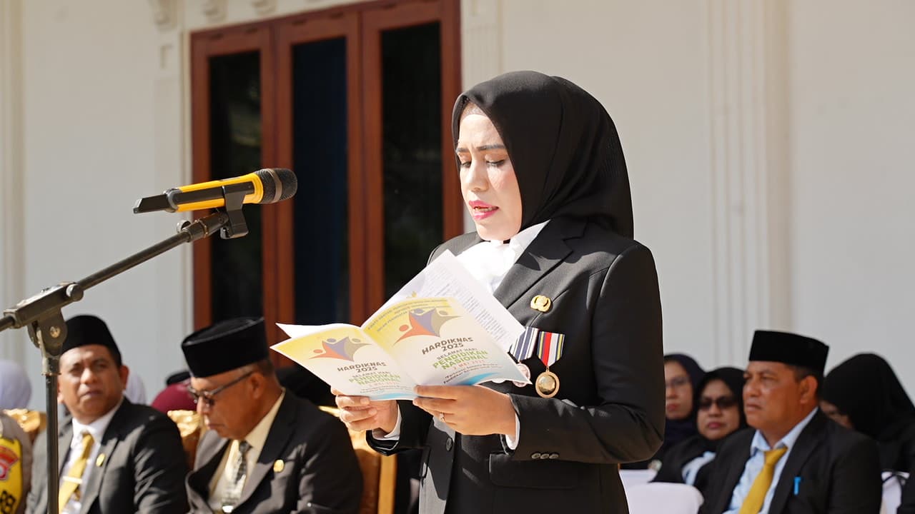 Bupati Kepulauan Sula, Fifian Adeningsi Mus bertindak sebagai Inspektur Upacara (Irup) sekaligus menyampaikan pidato Menteri Pendidikan Dasar dan Menengah (Mendikdasmen), Abdul Mu’ti.