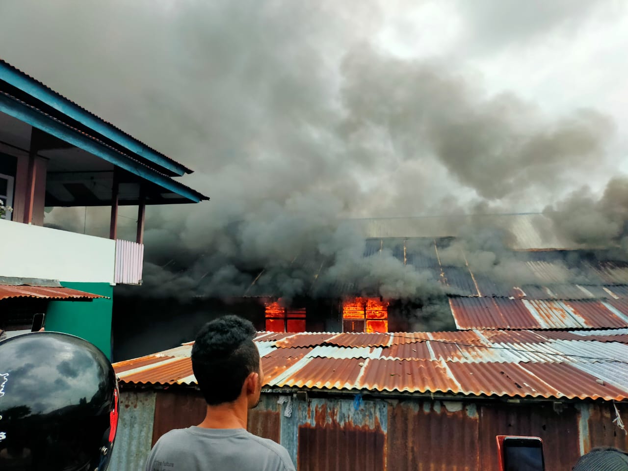 Meskipun demikian, tidak ada korban jiwa. Sekarang, petugas pemadam kebakaran bersama warga masih terlihat memadamkan api.