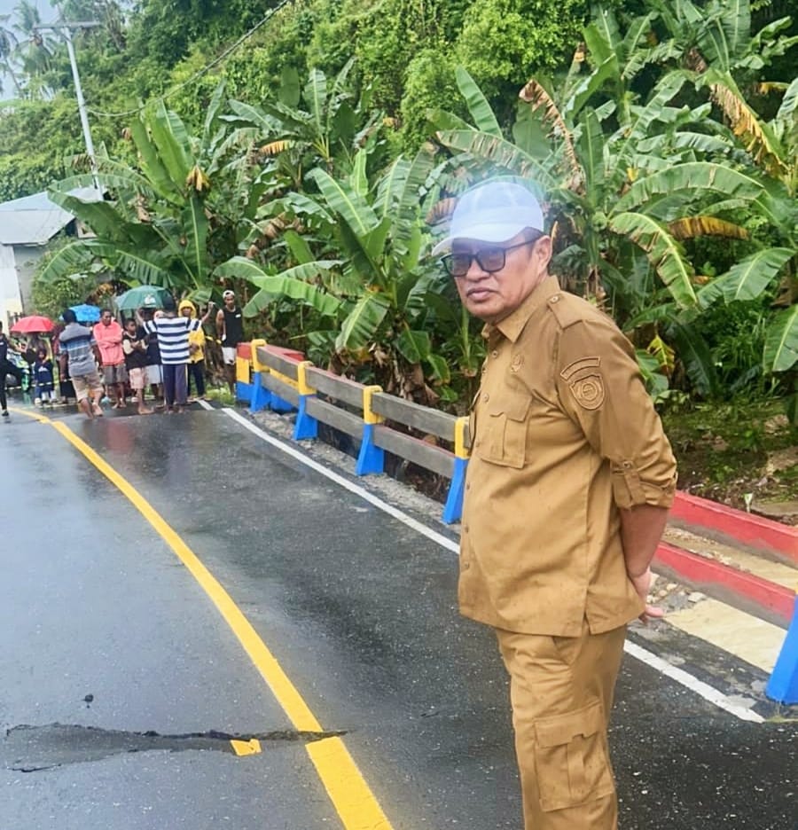 SANANA-Pemerintah Kabupaten Kepulauan Sula, melalui Badan Penanggulangan Bencana Daerah (BPBD), meninjau lokasi banjir di Desa Bega, Kecamatan Sulabesi Tengah yang mengakibatkan jembatan Wai Bega terputus.