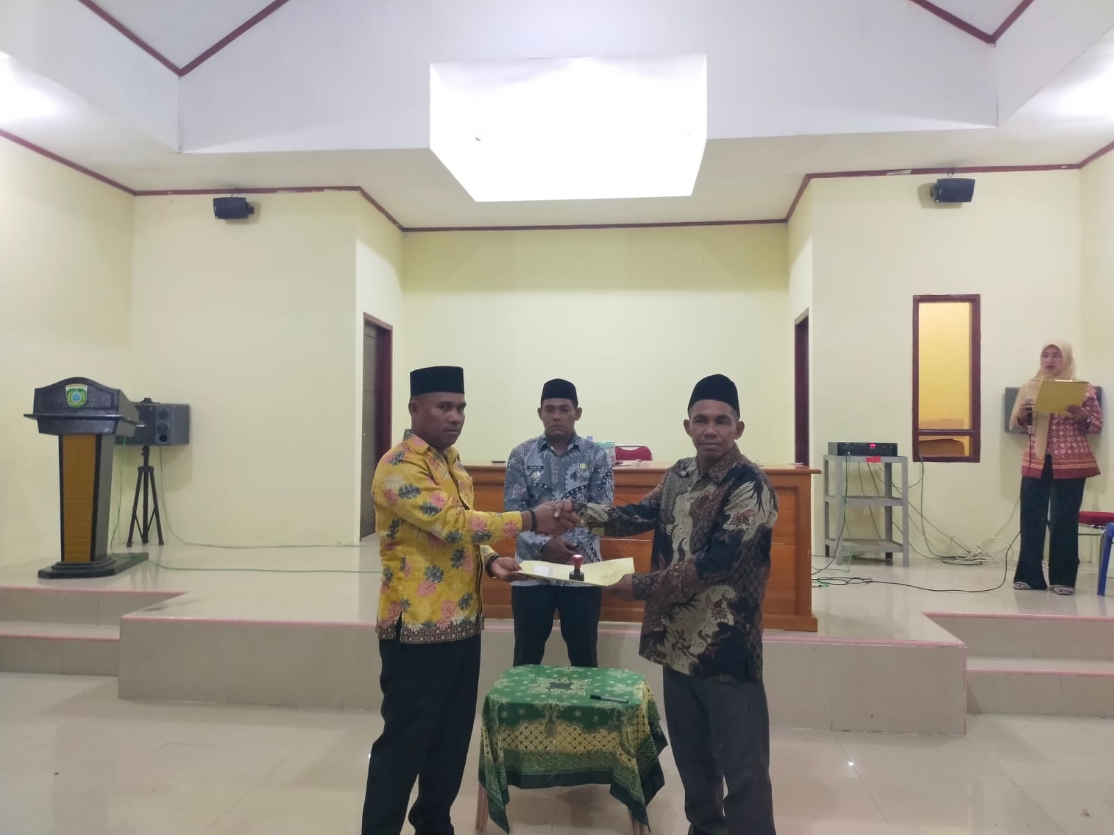 Mantan Kepala Desa, Harun Selpia dalam sambutannya, menyampaikan terima kasih kepada masyarakat, Badan Permusyawaratan Desa (BPD), Pemerintah Kecamatan, dan berbagai pihak atas dukungan selama dirinya menjabat kurang lebih empat tahun.